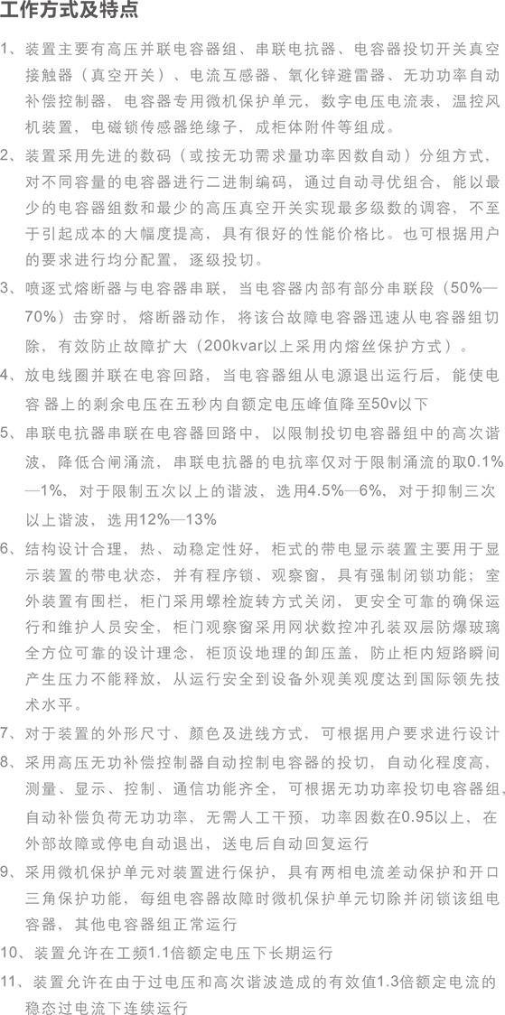 本裝置為固定補償方式,也可根據(jù)用戶要求采用手動自動分組投切。